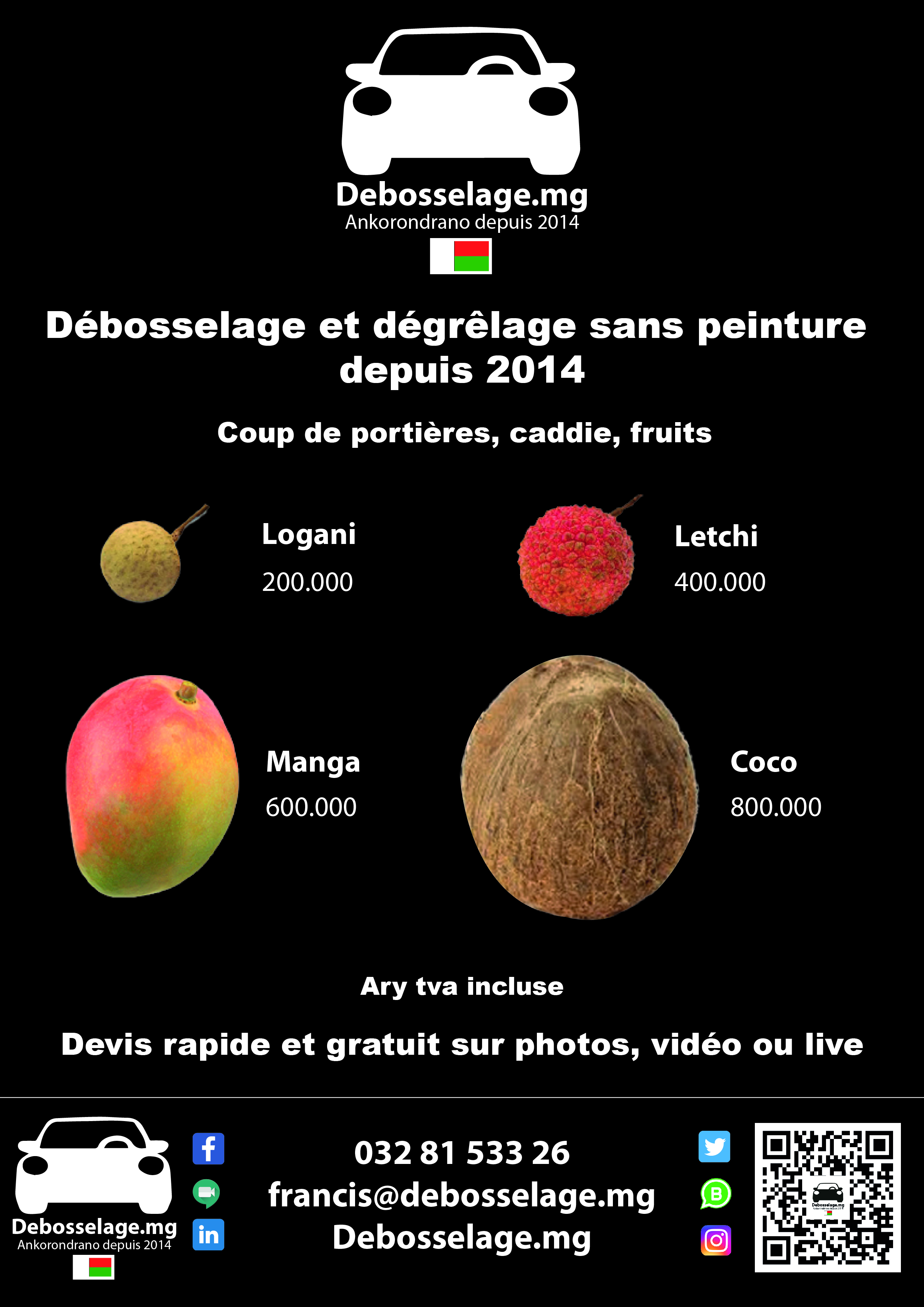 Devis rapide et gratuit sur photos : francis@debosselage.mg